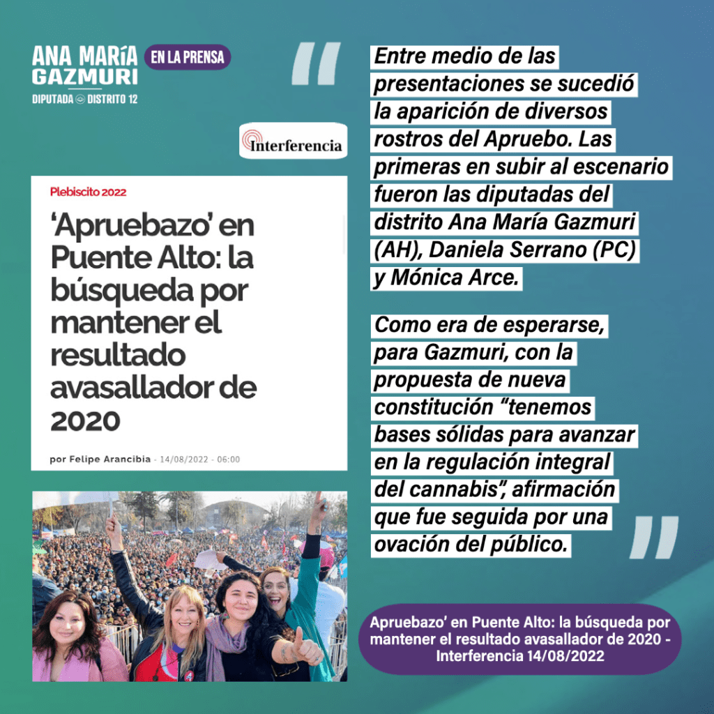 “Junto al pueblo de Chile vamos a cambiar la historia este 04 de septiembre para avanzar hacia un país más justo e igualitario. ¡El futuro está en nuestra manos!”, dice la diputada Ana María Gazmuri.
