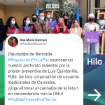 Junto a diputadas y diputados de la Bancada de Regulación Por La Paz, diputada Ana María Gazmurí expresó “profundo malestar” por la prisión preventiva a la que ha sido sometido Luis Quintanilla, Presidente de la 1era corporación de usuarios medicinales de Cannabis.