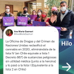 “¡Urge eliminar el cannabis de la lista 1 en concordancia con la ONU!”, afirma la diputada.