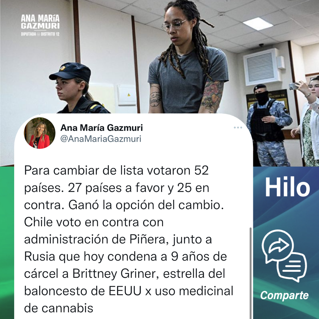 “¡Urge eliminar el cannabis de la lista 1 en concordancia con la ONU!”, afirma la diputada.